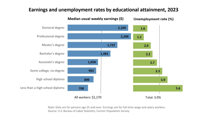 Providing the next generation with opportunities for social mobility starts with a solid foundation in education and career-focused skill development. According to the Bureau of Labor Statistics, higher levels of education are associated with lower unemployment rates and higher earnings. Each educational milestone not only builds valuable skills, but also opens doors to better paying jobs and demonstrates qualities employers value, such as the ability to plan, meet deadlines, and follow through on commitments.